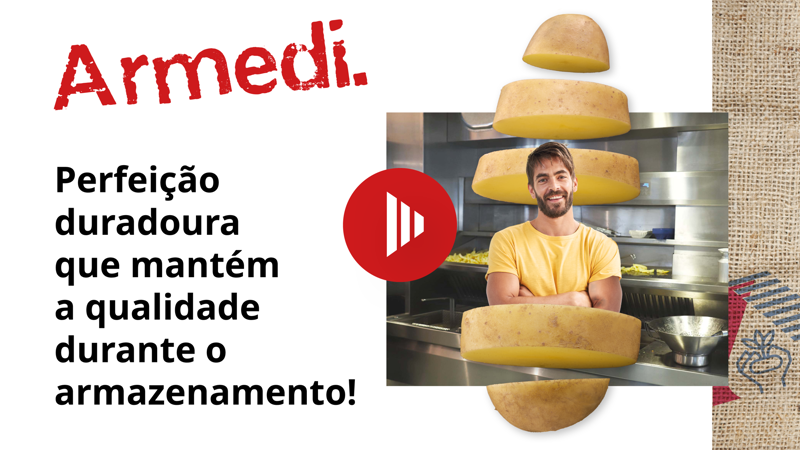 A variedade de batata que está a conquistar a indústria de batatas fritas em palitos! Qualidade de processamento perfeita e tubérculos ideais para batatas fritas. Uma combinação única de elevado rendimento, bonitos tubérculos ovais, excecional resistência a G. pallida, longa conservação e excelente qualidade de processamento até ao fim do ciclo vegetativo tornam a Armedi a escolha ideal para a indústria de batatas fritas em palitos. Descubra a variedade de batata cuja perfeição duradoura a torna ideal para fritar em palitos!